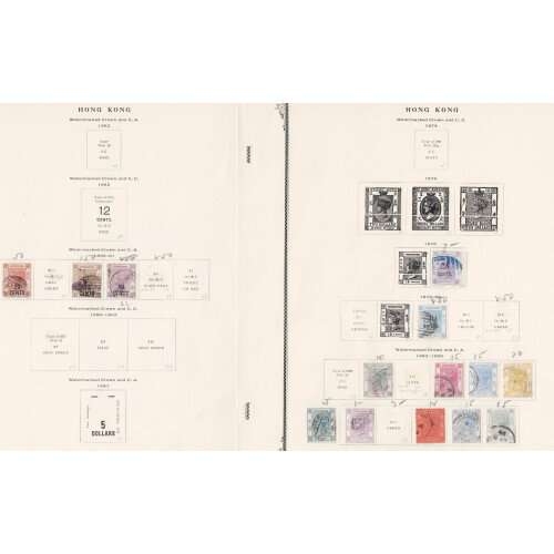 1862-1897 QV Used collection on printed leaves incl 1877 16c yellow, 1863 48c rose-carmine, 96c brownish-grey, 1876 28c on 30c mauve, 1880 10c on 12c used, Postal Fiscal 1897 $1 on $2 olive-green used HONG KONG cds (Cat £140), etc, useful little lot. (31).