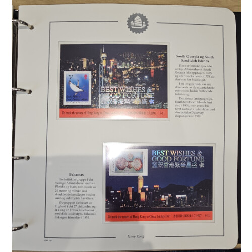 1997-2001 Special printed album with nice range of HK sets and M/S, arranged on printed leaves in Danish, includes large sheetlets, prestige booklets, defin sets to $50 U/M, etc, in two albums. High original cost.