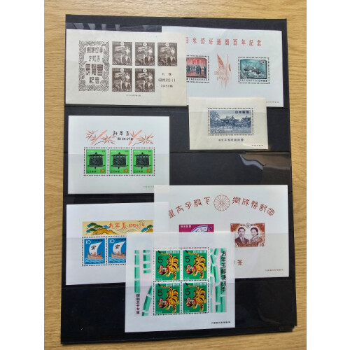 Miniature sheets range mainly unused including 1964 Olympic Games set of six U/M, 1947 Phil. Ex., for several different issues, 1948 various Exhibitions (4), 1947 Kyoto Exhib., 1951 New Years Greeting, 1950 defin 24y single M/S, etc. (22).