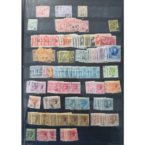 Stockbook with a mint and mainly used assembly duplicated including 1885 to 1f with 25c green (17 + pair cat £100 each), 75c f.u. (Cat £170), 1f (short corner cat £700), 1891 25c green (20+ cat £50 each), 1933 air used, 1933 vals to 20f used (Cat £500+), 1950 Accession 50c printed card for Prince Rainier, etc. High cat.