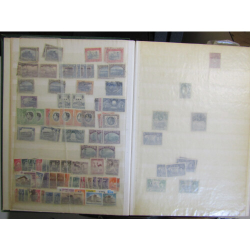 British Commonwealth: Three large stockbooks, all periods mint and used with countries S to Z, J to M & Malayan states, Labuan and North Borneo, noted Br. Africa, B.W.I, Sarawak, FMS Tigers,extensive K.U.T GVI to 5s used, many commems m & u, etc, 100s.