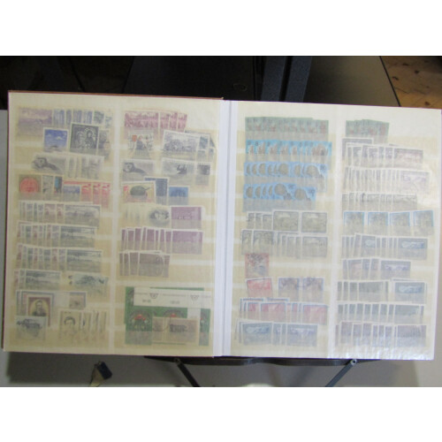 An overfull to the brim, large stockbook with a massive duplicated mint & used (two sections for mint or used) range from 19th century perfs to 1970, includes dozens of defins and commems, back of the book material for airs, Postage dues etc, 100s.