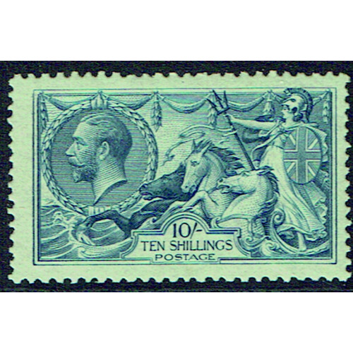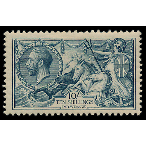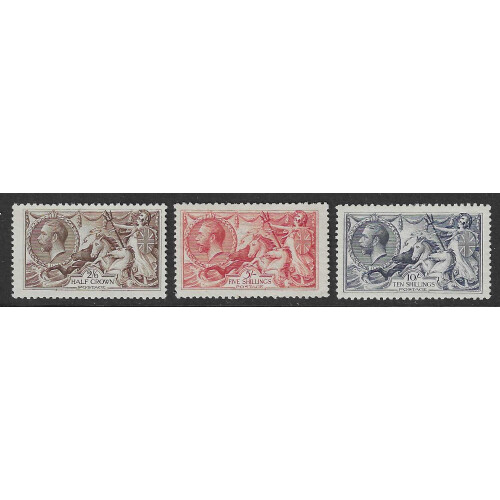 1918 Bradbury Set of three basic values 2/6 chocolate (centred right, appears U/M), 5s rose-red and 10s dull grey-blue mounted mint examples with small remains, 10s is very well centred, SG 414, 416/7 Cat £960.