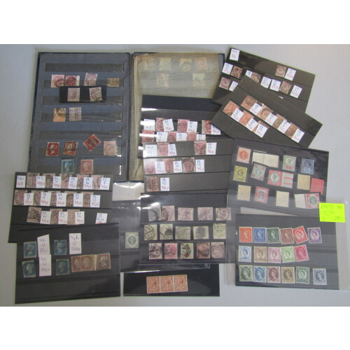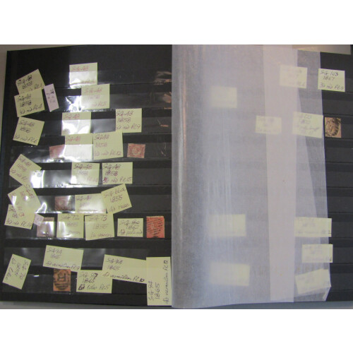 Jumbled accumulation - BOXFILE with all periods, mint & used on stockcards, leaves, envelopes, loose better noted QV surface printed 3d rose plate numbers (5-11, 14, 16-18, 20), 4d vermilion plates range (7-13), 2½d rosy-mauve plates (3-12, 14-16), 1841 2d blue varying margins, Wildings Edward set U/M, 1900 1s green mint, 9d bistre wmk emblems used, 9d straw pl.4 (wmk spray), 1974 Festival of stamps Air Mail Mercury reproduction in magenta label in imperf sheet of 100 and sheet of 90 (faults), 1841 1d red-brown mint large part o.g (2 margins Cat £600), 1918 Bradbury 2/6 chocolate-brown mint (Cat £325), 1d plates on cards, postage dues, 1887 complete basic defin set to both 1s mint or U/M (high cat value), etc, useful lot, 100s.
