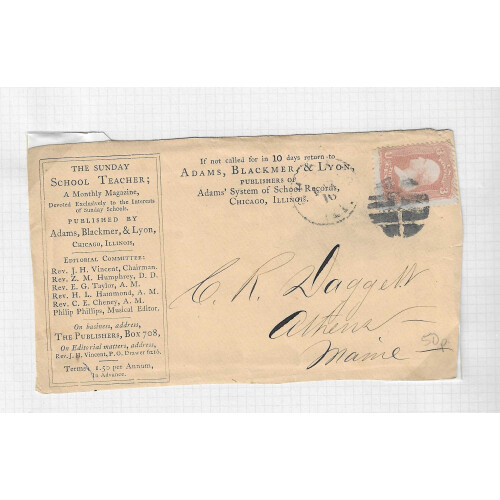Postal History 19th century range of covers and cards with many attractive examples incl Sunday School Teacher monthly magazine advert envelope with 3c rose to Maine, 1842 Philadelphia blue cancel and PAID boxed h/s to Boston with address redirected to London sent per steamer of the 16th to Boston (Paid 18c), James Jenks illus advert env, 1899 Philadelphia RD regd cvr, 1866 Lansing, 1886 Colebrook River, 1888 Rockland, 1928 Regd letter 'Found in ordinary Mail', 1906 Boston FB cancel and Station A both to India (5 from the same correspondence), etc (23).
