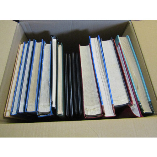 Worldwide accumulation including country lots in well filled stockbooks for duplicated mint and used noted Germany 1936 Brown Ribbon M/S mint, India, Canada with dozens Queen Head low values ½c black (12), 1c yellow (approx 30), 2c green (25), 3c vermilion (approx 80), 5c olive (13), 6c brown (6), 8c grey (6), 1898 Xmas (50+), EDVII to 10c used, GV to 50c, Queensland QV low values duplicated to 1s, Paintings thematics in stockbook, thematics on dozens of stockcards,