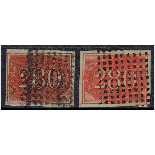 1861 280r red two fine used four margin example with dotted squared cancels, fine, Scott 39.