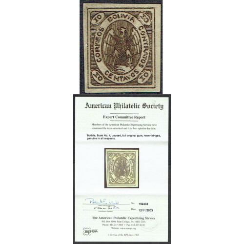 1967-8 10c brown Condor with four large margins and full original gum complete with APS 2003 certificate, nice example. Scott 4.