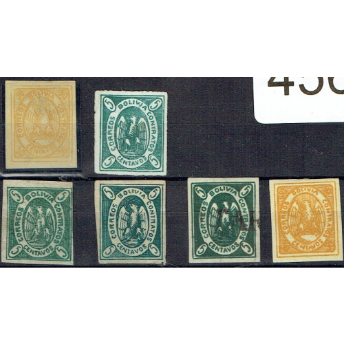 1867-68 Condor Imperfs useful unused range 5c green x 3 different shades, 5c deep green fine used, 50c orange and 50c yellow all good margins. Scott 1/2, 5.