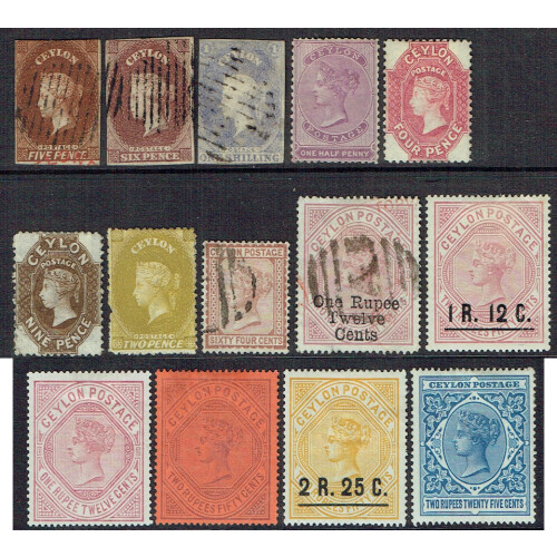 1857-1900 Queen Victoria Collection mint and used on leaves with better including 1857 Imperfs 1d blue (2), 2d (2), 5d, 6d, 1s (high cat, mainly f.u. neatly cut with some margins), 1861-64 to 1s, 1863-66 to 9d, 1864 ½d dull lilac mint, 1867-70 to 2s, 1872-80 to 96c used, plenty of surcharges to top values m & u, 1886-95 1r12c m & u, 1899 2r25c purple on red mint, official 1r12c used Service ovpt. Useful lot with high cat value. (c130).