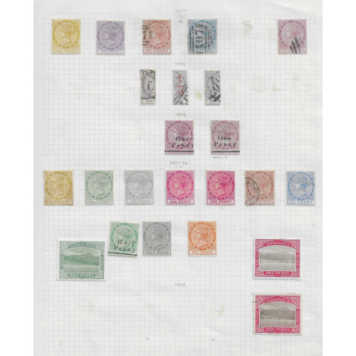 1880-1896 Collection on two album pages for QV issues including 1880 1d red plates 201, 215, 216, 217, 218 mint (Cat £129), 1881 ½d on 1d red Type 3 pl.205, 216, mint, Type 5 plates 215, 1882 Wmk CA Die I 4pi used, 6pi, 12pi both used (Cat £73), 1894-96 mint for 6pi to 18pi (Cat £137), useful assembly and good cat value. (43). STC £1050+.