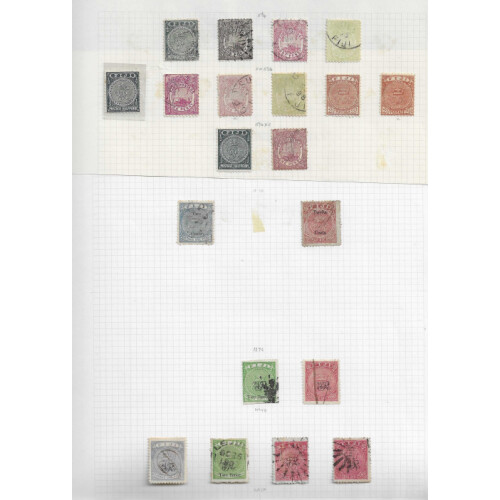 1872-1898 Collection on leaves with a comprehensive range arranged bu different printings, 1872 2c on 1d pale blue, 6c on 3d yellow-green & 12c on 6d carmine-rose used (Cat £250), 1876 Wove paper 1d blue mint (Cat £60), 6d pale rose pen cancel, Laid 1d pen cancel, 2d on 3d yellow-green f.u., 6d rose (2), 1878-99 arranged by perfs 12½ 1d blue mint (2 shades), 2d on 3d mint, 2d mint, 6d used, P.10 1d blue mint, 2d mint, 4d on 1d mint (SG 41 Cat £85), 6d rose m & u, more perf combinations m & u, 1881-99 1s pale brown diff printings mint, used (3), 1882 5s used, 1891-1892 surchs incl SG 72 mint (Cat £75), 2½d on 2d green mint (Cat £75), 5d on 4d purple mint, 5d on 6s rose mint (2 diff), excellent lot to fill those gaps. (85).