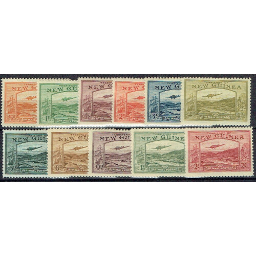 1939 Bulolo Goldfields Mint set to 4d, 6d & 9d. Fine used 5d, 1s & 2s. Fine. (11).