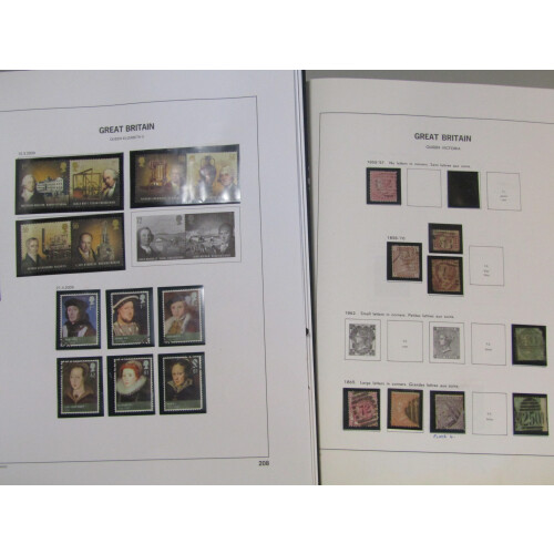 1841-1989 Used collection in a Davo boxed printed album (some marks on cover) with useful throughout including 1847 Embossed 6d lilac (no margins), 1s pale green (2 margins f.u.), surface printed mainly complete for values to 1s incl 1862 9d bistre f.u., 1867 to 2s blue incl 9d bistre, 1880 to 1s orange-brown pl.13, 4d brown pl. 18, 5d indigo, 1883 9d green f.u perfinned central cds, 1884 1s green very nice Leominster cds, 1887 to £1 green (small faults, rubbed SW corner) regd ovals, 1902-10 to £1 green (faults, re-enforced tear), 10s cds used, 1918 to 10s, 1934 Re-engraved set used, 1948 RSW set, 1939-48 set, 1951 Festival high vals set 3 to £1, 1950s-60s Wilding sets incl Graphite's, QEII with a great amount of completion to 1989, back of the book incl P.Dues, officials with better, 100s. Ideal for expansion.