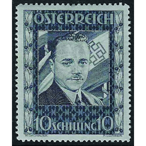 1936 Second Anniversary of Assassination of Dr Dolfuss 10s blue mounted mint, light stain on left side, otherwise fine, SG 793 Cat £1300.