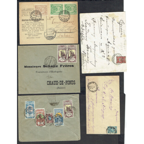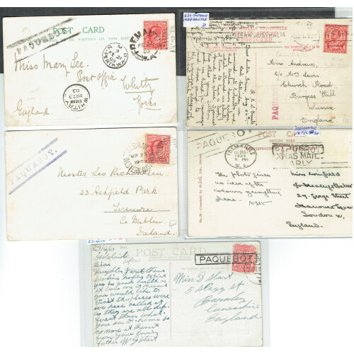 Maritime: PAQUEBOT cancels on a large group of covers and cards from turn of the 20th century to middle periods, wide range of different countries and destinations incl from Colombo, Napoli, Curacao Missent and forwarded from Leominster. Mass., Bombay, Aden, via Suez, Port Taufio, Port Said, Mombassa, Capetown, Algiers, San Vicente Cape Verde, Permanbuco, Balboa, Ancon, Constantinople, Palma De Mallorca, Lisbon, etc, diverse and interesting lot (53).