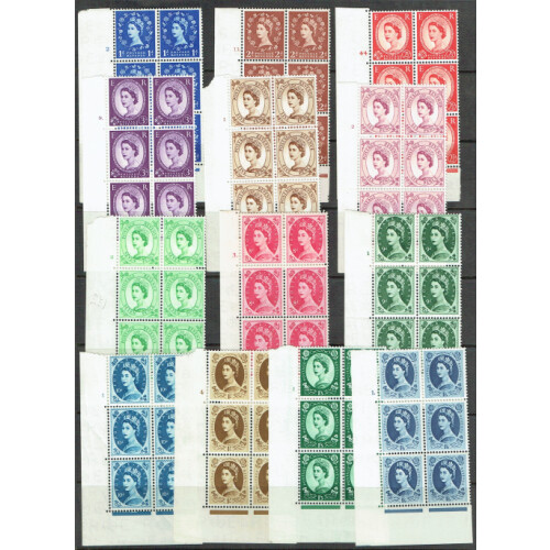 1955-50 Edwards Crown wmk Cylinder blocks of 6 for 13 different values 1d to 3d, 5d to 10d, 1s, 1/3 & 1/6 mostly unmounted mint, few margin bends or faults otherwise useful cat value £960+.