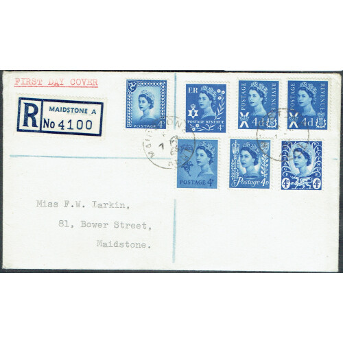 1966 (7 Feb) Regionals 4d blue set of 6 on regd FDC sent locally in Maidstone, mainly fine.