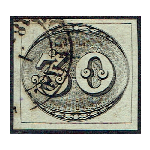 1843 Worn Impression 30r black a superb fine cds used example with 4 large margins and decent part GERAL cds cancel, very fine for these, Scott 1b.