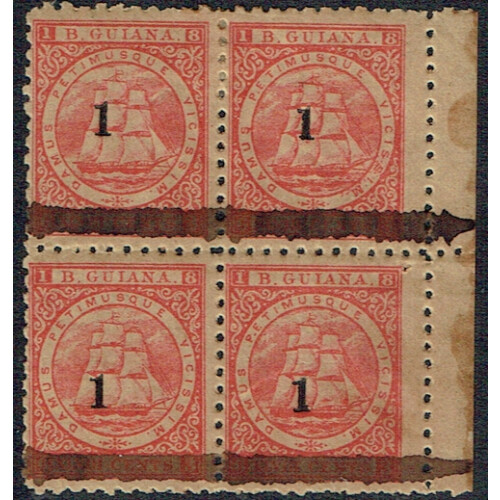 1881 1 on 48c red right marginal mint block of four showing type 21 surcharge (SG 152) tropicalised gum and tones, SG 152.