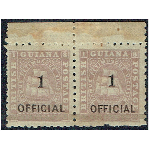1881 1 on 12c brownish-purple OFFICIAL top marginal PAIR showing type 21 surcharge (SG 153) mint with gum toning and gum stains on margin, SG 153. Cat £280.