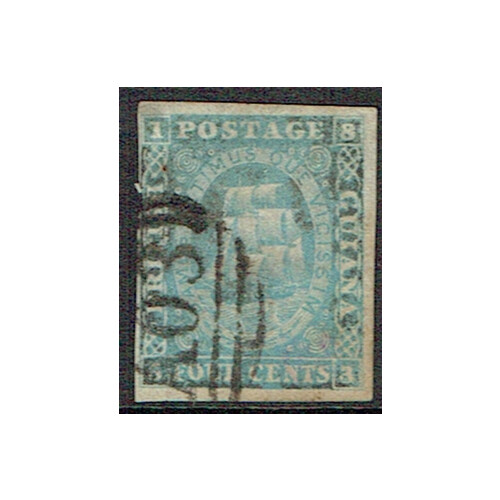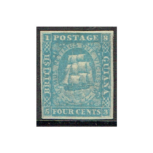 1860 Framed in corners 4c blue superb fine used BERBICE double arc cancel of SP 11 / 1866, good to large 4 margin example, sound, SG 21.