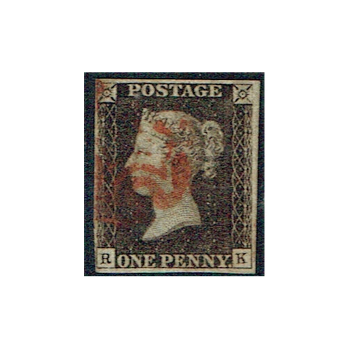 1840 1d black, (RK) fine used four close to good margins with neat red MX cancel. Sound.
