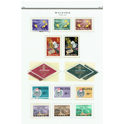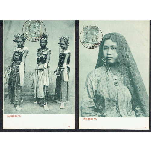 POSTMARKS COLLECTION - QV onwards extensive range on leaves arranged by types, including Straits Settlements duplex cancels D14, D17, different cds types, incl dotted SINGAPORE, d/r, slogan cancel, date slugs removed, Penang cds's incl on Siam, Perak squared circles, Butterworth arc types, Nibong, FMS Tigers used in different areas, Pahang, Kedah, FPO's in Malaya, India type cancels B172 (5), Dumb or dotted cancels, 1924 MALACCA BRITISH EMPIRE EXHIBITION ovals, Shipping cancels, then 1940s-60s states cds cancels, dozens on leaves, interesting lot. (Approx 550+, not including very modern postmarks).