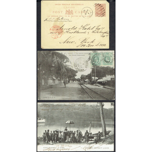 Group of covers from GV/QEII includes nice multi franked covers, noted 1958 UMUTO, UGUUOBA, ABA, DEGEMA, 1954 OHMS EBUTE METTA (Chief Railway Engineer), 1948 1s postal order ABATETE (toned), 1949 KANO, BAMENDA, ASABA, OBUNDU, AKURE, EHOR, YABA, etc. Very mixed but useful group of 22 covers.