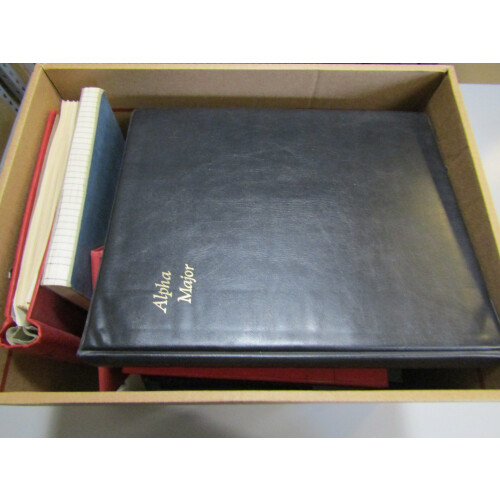 Ex-estate lot in a large archive box from a large collector's lifetime world collection. Amongst others mainly in albums, stockbooks some are well filled with country sections noted British Commonwealth, thematics in well filled binders incl Ships / Maritime, too much to list here, viewing advised. Plenty to go at here ideal for fairs dealer or ambitious collector. 1000s.
