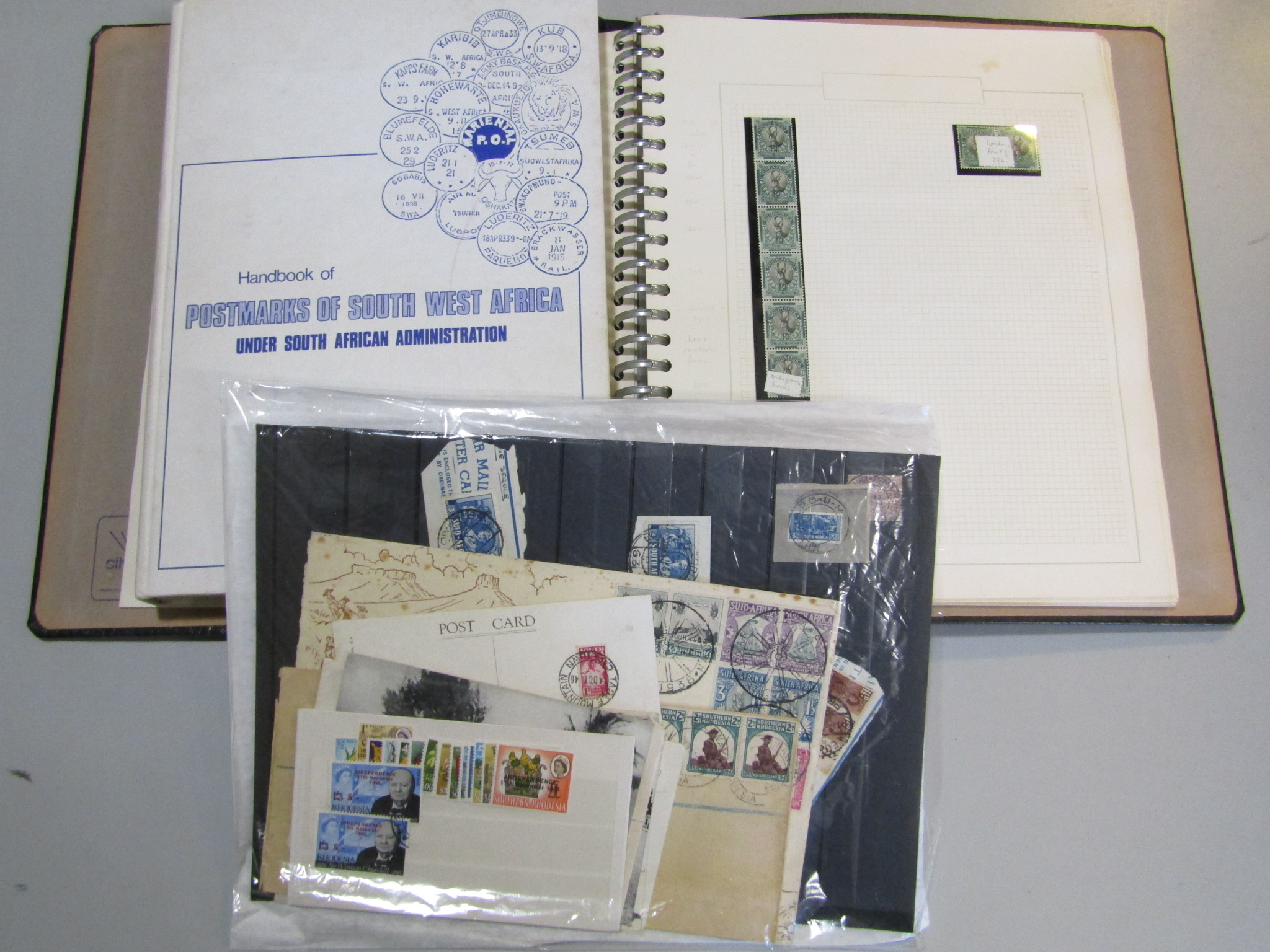 British Africa: Balance of large estate includes several stockbooks homelands in mint blocks, S. Africa collection 1913 onwards with pairs to 1s mint and unmounted to 1960s noted 1913-24 GV to 2/6 mint, SWA, Rhodesia album with plenty of nice mint sets and FDCs noted 1970-73, S.Rhodesia, Nyasaland 1959-62 set mint, various covers and much more housed in large archive box.