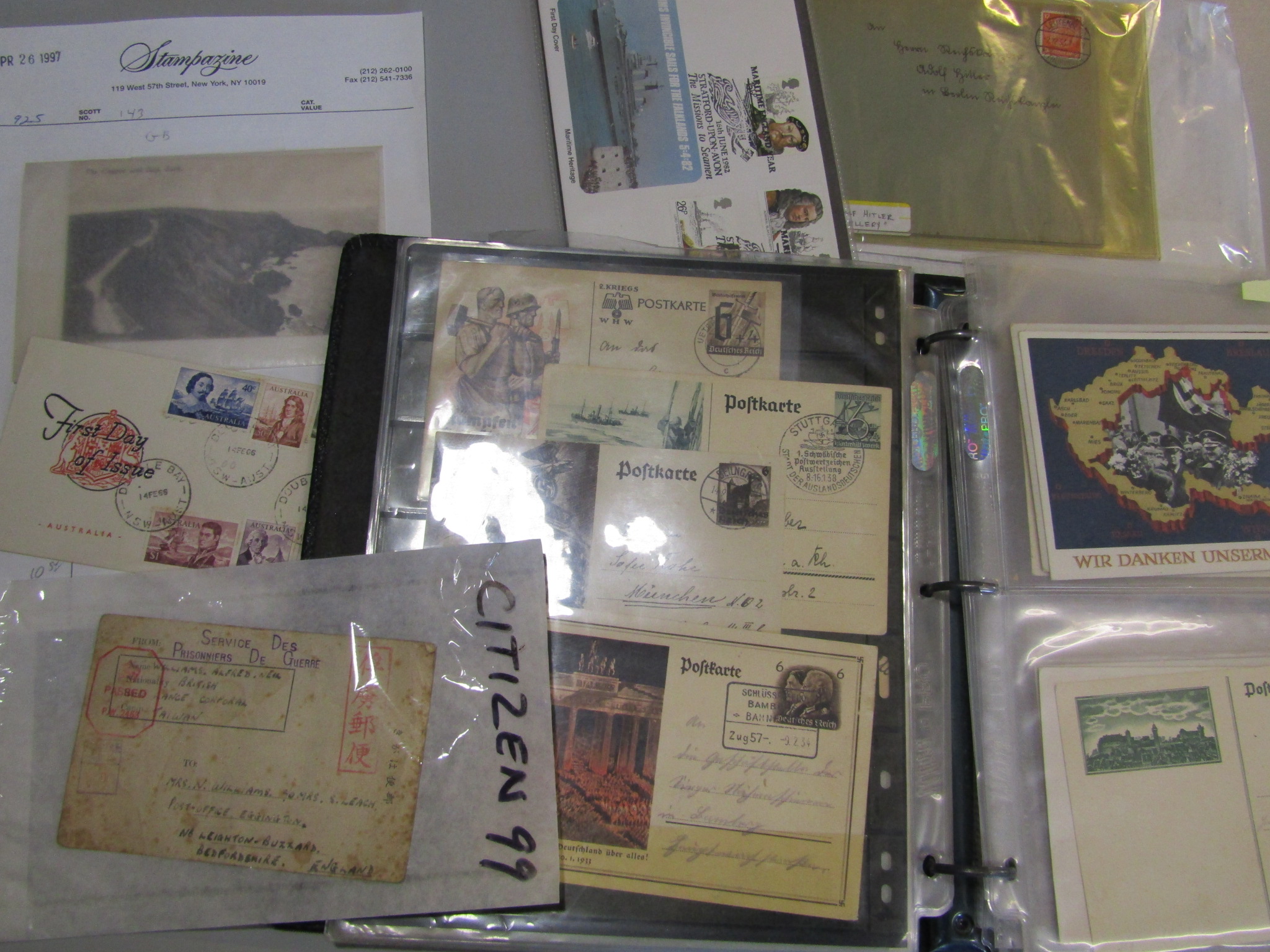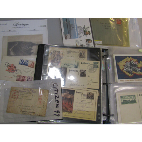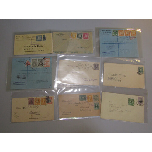 Argentina: Forty Two covers early to middle periods with interesting incl 1941 Demonetization of postage stamps printed cvr with green dated cachet (last day?), postcards used with nice views, 1902 underpaid to Uruguay (2 diff), 1943 Censor to London on advertising envelope, 1921 illus. advertising env with Feliz 1921 gold label affixed to France, Meteorological office with MA officials to Transvaal with S. African censor, 1944 Grand Maritime Expo PPC of warship, 1886 P/S env to Germany, 1898 6c lilac P/S env to UK with many transit and arrival cancels, two Ministry of War wrappers for military bulletin, 1929 Naval MM departmental to Buenos Aires, etc, intr lot. (42).