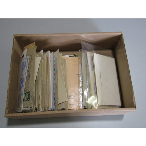 Worldwide covers small accumulation from 19th century onwards odd better throughout including Edwardian postcards, Belgium P/S cards unused, P/S cards used from Germany, Austria, Switzerland, France, Denmark, Egypt, Lagos, Italy, Corps Expeditionaire de Madagascar, French turn of the century postcards, Reunion 1970s commercial mail, Byrd 1933 Antarctic Exped., 1958 Great Barrier Is. Pigeongram, Japan wood postcard etc, good qty.
