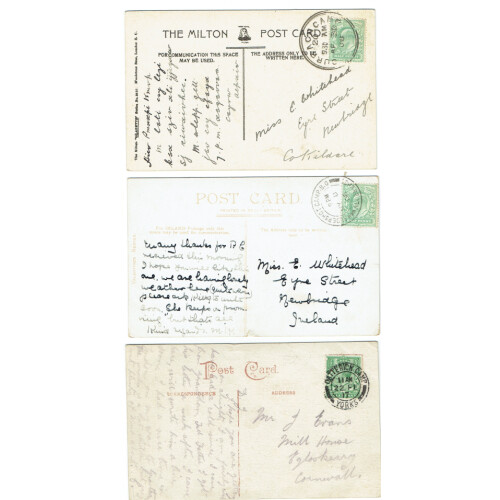GB GV Postcards large group of c90, mainly ½d defins tied by different CAMP CDS postmarks many appear military, also some nice Exhibition cancels, appear all different including Sutton Veny Camp, Blackdown camp, Bordon Camp, Bovington Camp (opened 1899 still in use), Bourley Camp, Boyton Camp, APO No.5 1906, 1910 Currage Camp, Curragh Camp (Ireland, two incl large double ring), Deepcut Camp, Frensham Common, plus so many more, variety of topographical subjects, 1906 Beaulieu Camp (Military training camp) large CDS (vertical crease) etc, Approx 90.