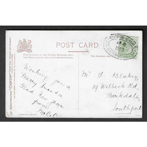 1911 First UK Aerial Post: Purple-Brown printed envelope and insert used 1d red tied special cancel, various faults and bends, plus two postcards one Farman Aeroplane in flight (colour), second postcard photo type with Radley & Bleriot Aeroplane on the ground. Nice trio written up on pages.