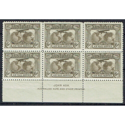 1932 (20 July) Long multi franked registered cover Sydney to Cornwall (UK) bearing 1931 Air ovptd OS 6d sepia pair (SG 139a cat £60 each x 3 on cover), 1929 3d green air in top left corner marginal plate 3 (slight soiling SG 115), 1931 air 6d sepia, 1931 Kingsford Smith 6d violet, Tasmania QV 1½d on 5d plus 6d Kook. Typed air flight services Sydney to Melbourne to Adelaide to Perth and Karachi to London. Some edge creasing otherwise attractive album piece.