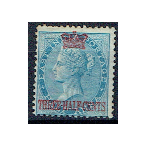 Straits Sett.: 1867 1½c on ½a blue mint part original gum with heavy hinge remains, SG 1 Cat £150.