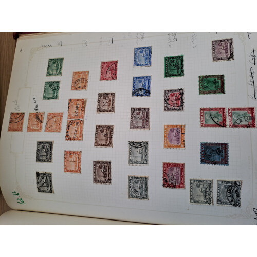 Collection in an old time Paragon album mint and used with good range of different areas QV to 1950s, some values to $5, mainly GVI period, plus Jap. Occup issues, FMS Tigers etc, nice original lot.
