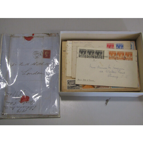 Binder with a useful old time assem,bly jumbled in plastic display leaves better including Uruguay 1893 AR cvr, 1925 regd ptd front bearing 1925 5c & 45c centenary El Rincon tied blue oval RINCON cancels, Peru 1932 Austria air card uprated for July 1933 flight cachet, 1866 1d tied to front to Lima, Austria 1950 Flight covers incl imperf M/S's for Austria to United States flights, 1950 20s black imperf proof on folded ptd sheet, Switzerland, Cuba 1935 airmail cacheted cvr to New York, Ecuador 1960 label for help from America in our time of need, Guatemala 1943 multi franked airmail to Canal Zone RELEASED BY CENSOR, France 1935 RAID INTERROMPU flight PPC to S. America, Nicaragua 1939 flight cvr, Iran 1940s cvrs etc. Intr lot.
