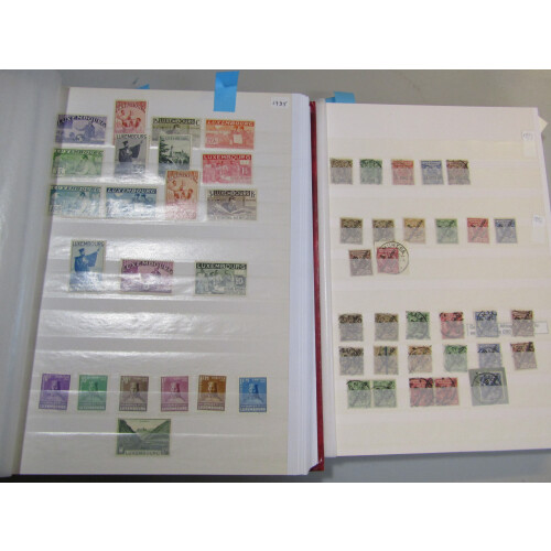 British Commonwealth: Useful mint and used collection on circa 40 stockcards mainly QV-GVI issues for many different countries including Dominica ½ surcharge pair, Bahamas GVI £1 used, FMS, Aden to 1r mint, S. Africa, Seychelles, Labuan, Ceylon, Malta, Gibraltar, Australia to £1, KUT crescent flaw used (faults), Br. Guiana, , plus more, STC £2200+ (not checked, but obvious not counted). Mixed.