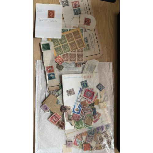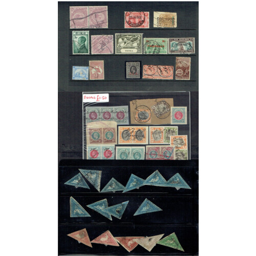 British Commonwealth ranges jumbled in packets, on cards and loose QV-QEII with dozens of packets to sort through with a wide variety of different countries, Swaziland, BWI, India states, Ceylon, Sudan, Queensland 5s used, Labuan, Malta, Oil Rivers, Br. Africa, Papua Lakatois, N.Z., Canada, NSW on paper, needs careful sorting.