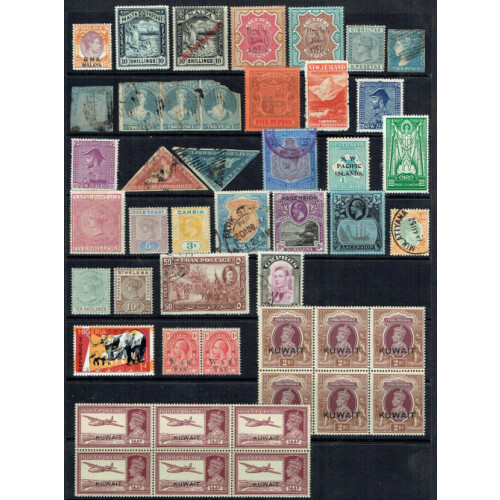 British Commonwealth useful QV to GVI assembly on stockpages with many better throughout including BMA Malaya to $5 mint, Malta GV 2s mint, Sudan 1935 General Gordon set used, Officials 1936-46 blocks of four to 10pi. and 1948 set (less 6pi.) mint, Gambia 1886-93 set with shades mint, Kuwait 1939 2r. block of six unmounted, 14a block of 6, Malta 1899-1901 10s, 1922 10s. and 1926 sets (2) mint, B.E.A. 1895-96 2r. and 3r. mint, Mauritius 1859 Lapirot 2d. and Dardenne 2d. used, 1900-05 5r. mint, Straits Settlements 1892-99 $5 mint, Ascension 1922 and 1924-33 sets mint, Lagos 1887-1902 set mint, New Zealand 1857-63 2d. strip of 3 used (faults), 1902-07 5s. and 1926-34 3s. (2) mint, Cape triangulars used, B.C.A. 1897-190 2s.6d. mint, Natal 1874-99 5s. mint, Australian States, Jamaica QV mint, Gibraltar QV mint, plus dozens more, enormous catalogue value.
