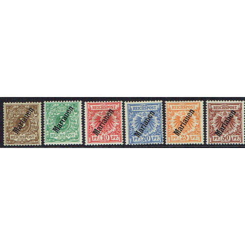 Mariana Islands: 1900 set of six overprint on Germany, 3pf is unused, 50pf appears U/M, Michel 1/6.