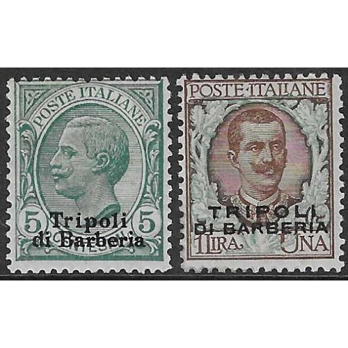Italian Post Offices in Libya: Tripoli; 1909 Tripoli di Barberia overprint on 10 different values mounted mint (usual tropical gum) including 5c green (Cat £170), 1l brown and green (Cat £170), 5l blue and rose top value, mainly sound SG, 174/181, E182/3 Cat £460.