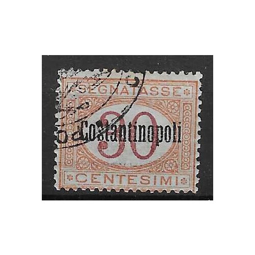 Post Offices in the Turkish Empire: Constantinople: Postage Due 1922 30c magenta and orange part original gum with part control cachet (applied over four stamps) cancel with Constantinopoli overprint, corner crease otherwise fine, SG D100 Cat £85 mint.