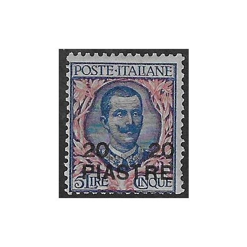 Post Offices in the Turkish Empire: Constantinopoli; 1909 20pi on 5lire blue and rose mint with usual tropicalised gum, SG 58 Cat £75.