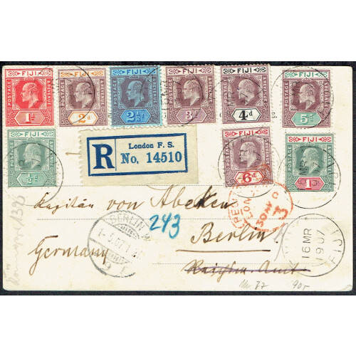 1934-1957 THORSHAVN covers used with Denmark adhs tied cds cancels, incl a 1957 correspondence some sent locally incl Kvivik, Eidi, Vagur, for 12 covers, a couple incoming, Mailbag labels unused for registered post Klaksvik, Vagur, Tvoroyri, Ordinary Mail unused printed tags (9 for different areas), Cash on Delivery forms used in Thorshavn, Parcel cards incl airmail (14), various postal ephemera labels, Giro forms / postal orders (14). Intr lot.