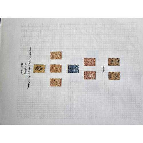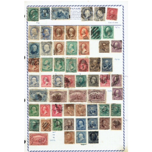 Extensive mainly used mainstream collection in a binder on leaves with 1859-1966, with dozens of defins and commems used, noted 1859 small imperf types, 1862 newspaper, 1863 Eagles, 1866 imperfs, 1871-79 issues imperf, plus bisect on piece 25c orange, 1880 Bolivar issues used, 1888 25c orange rouletted 8 imperf between mint pair, 25c orange imperf mint, 1896 Map set mint plus tete-beche 25c block of 4 mint, 50c rose-red used pairs (each taken as is), misperfs, plenty of defins and commems to 1960s, ideal to fill those gaps!