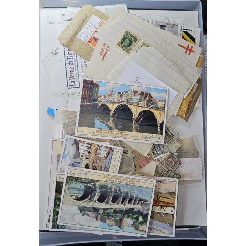 Miscellaneous collection of stamps, covers, loose packets and first day sheets including some Belgium Congo, nice mix of useful material in a box file size box ideal for the ebay seller, Belgium pre cancels and much more. viewing recommended. (100s +).