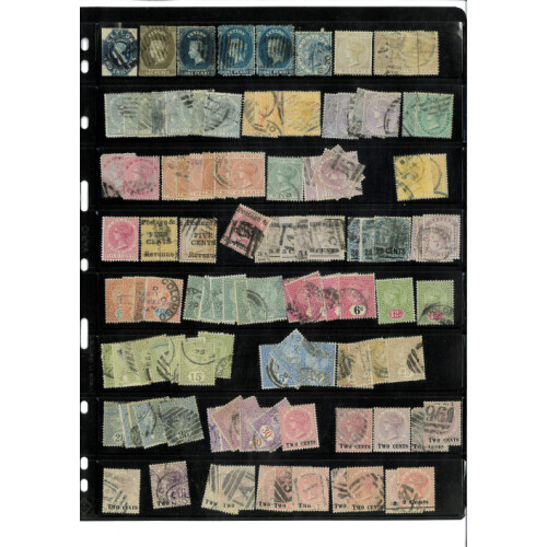 QV Collection on stockpages including Imperf 2s blue (taken as is), perfs 6d drab, 1d blue (2), small heads to 48c used duplicated, surcharges duplicated, then assembly for EDVII onwards. 2 stockpages.